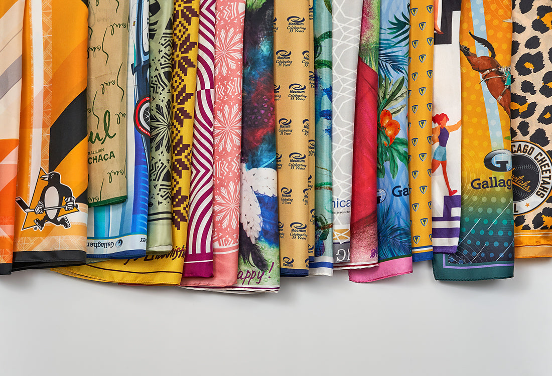 CUSTOM SILK SCARVES & POCKET SQUARESlearn moreComplimentary standart artwork & design, any size, 100% mulberry silk twill, charmeuse or georgette, custom labels, high-end quality & affordable.