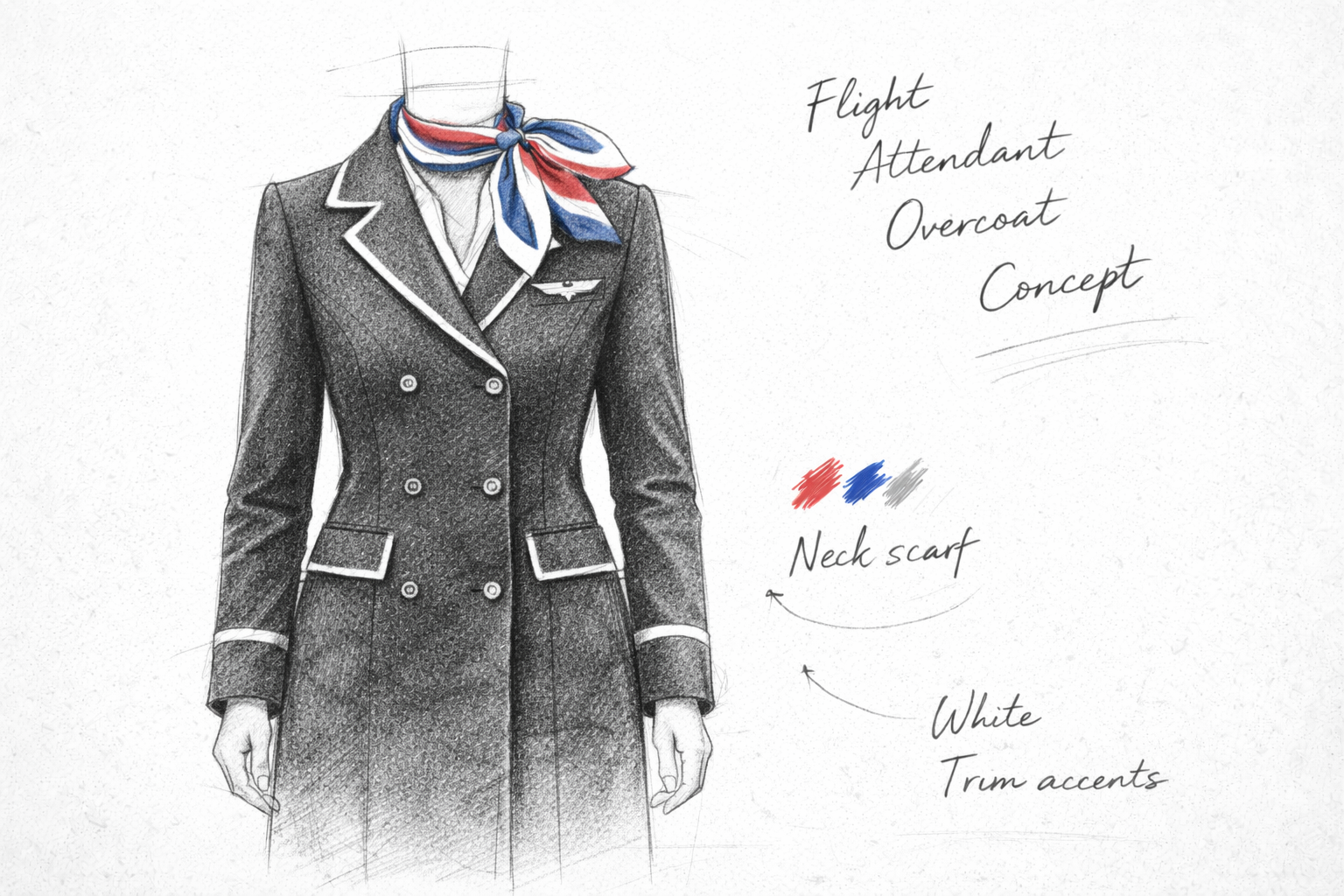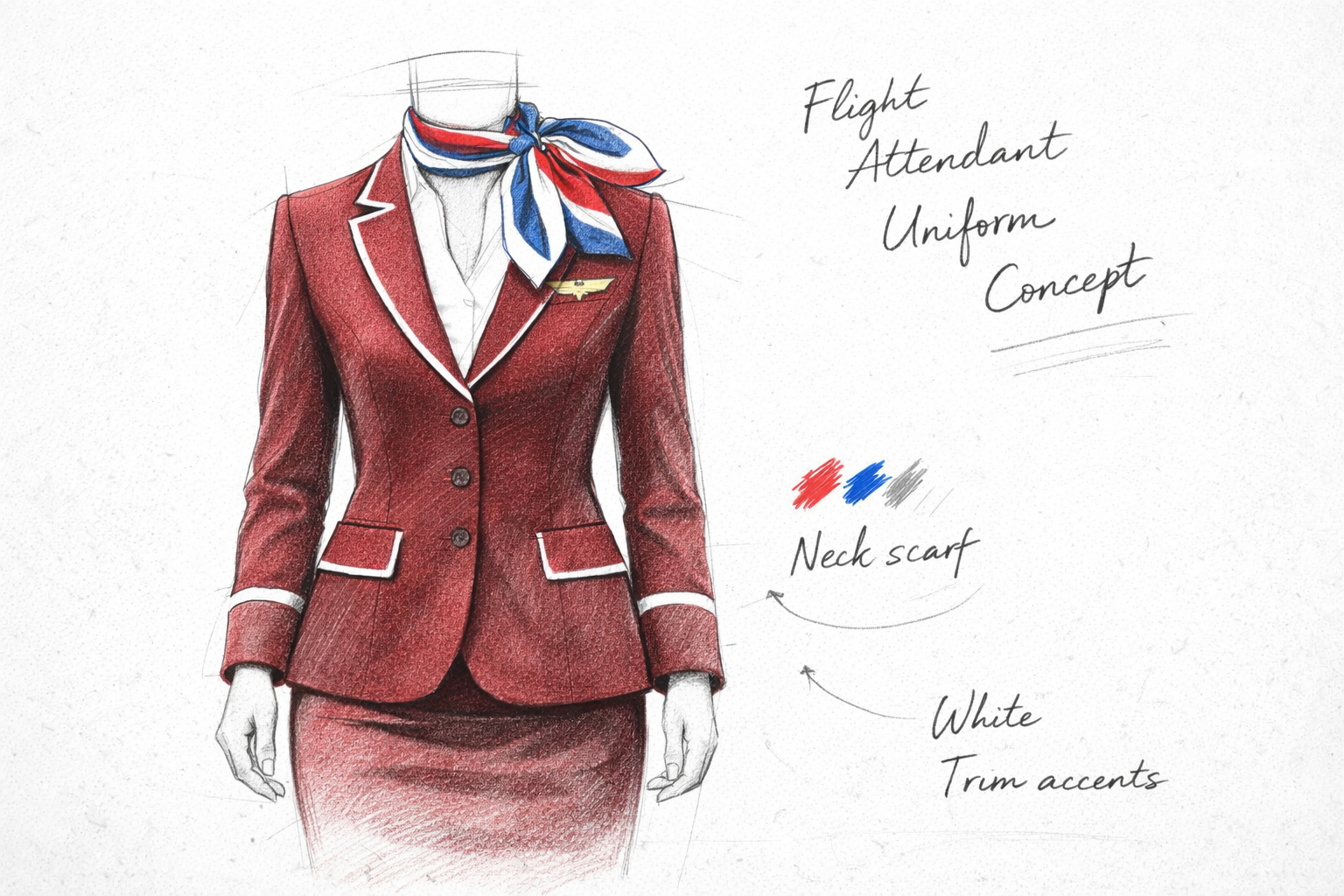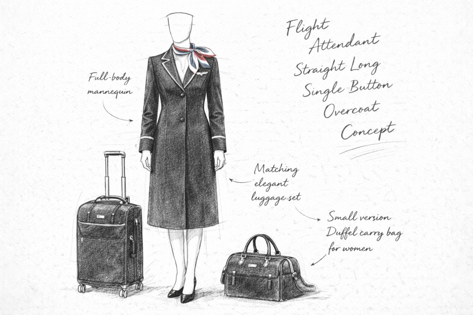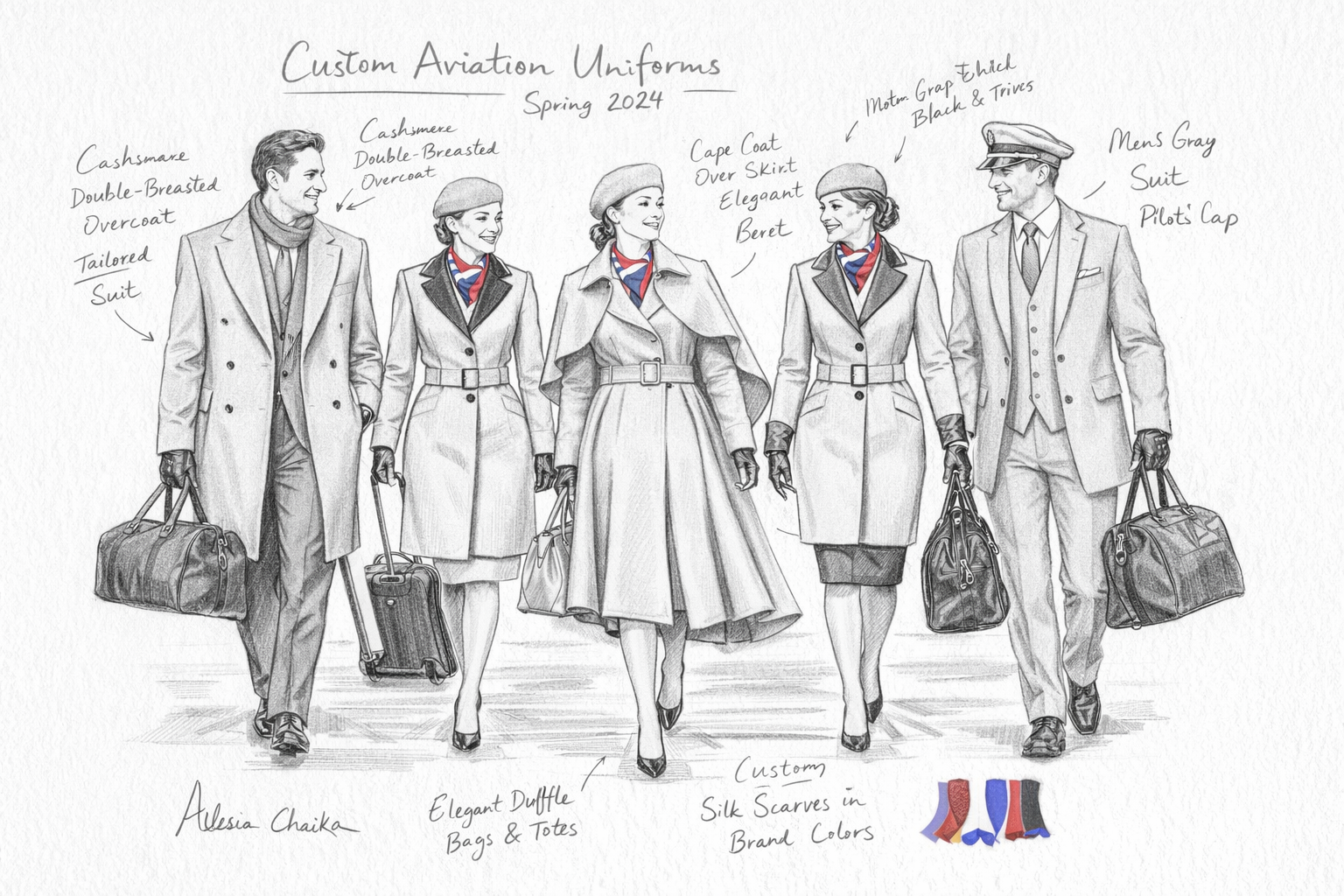 Each project begins with hand-drawn fashion sketches, capturing your brand’s character and aviation