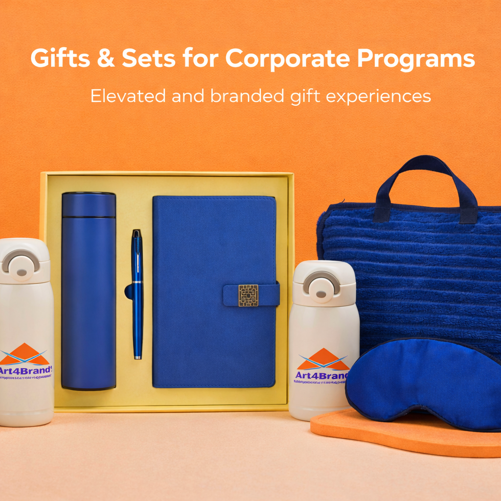 Each gift set can be finished with custom packaging and presentation, transforming practical items into memorable, brand-driven experiences.