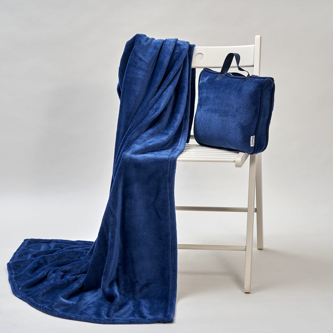 For restful, relaxing vibes while on the road or picnic bring along this cozy plush blanket that's a warm favorite wherever it goes. Fold it and zip it up to transform your printed blanket into a softest pillow which has a strap to attach to your luggage's handle.