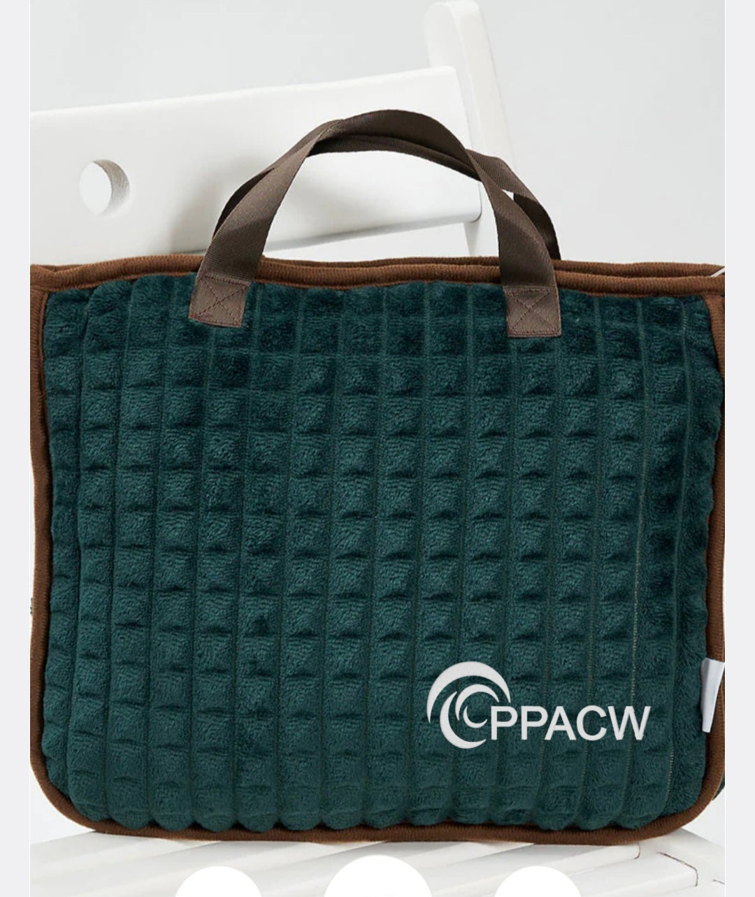 - Bag: 12”x11” with 1" strap at back, folded blanket