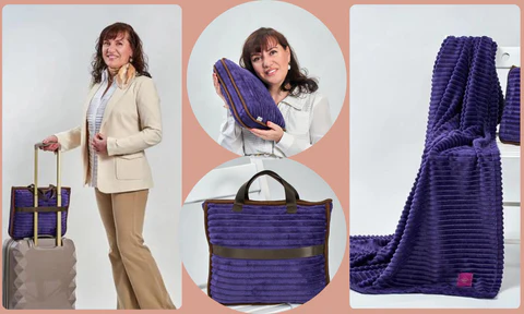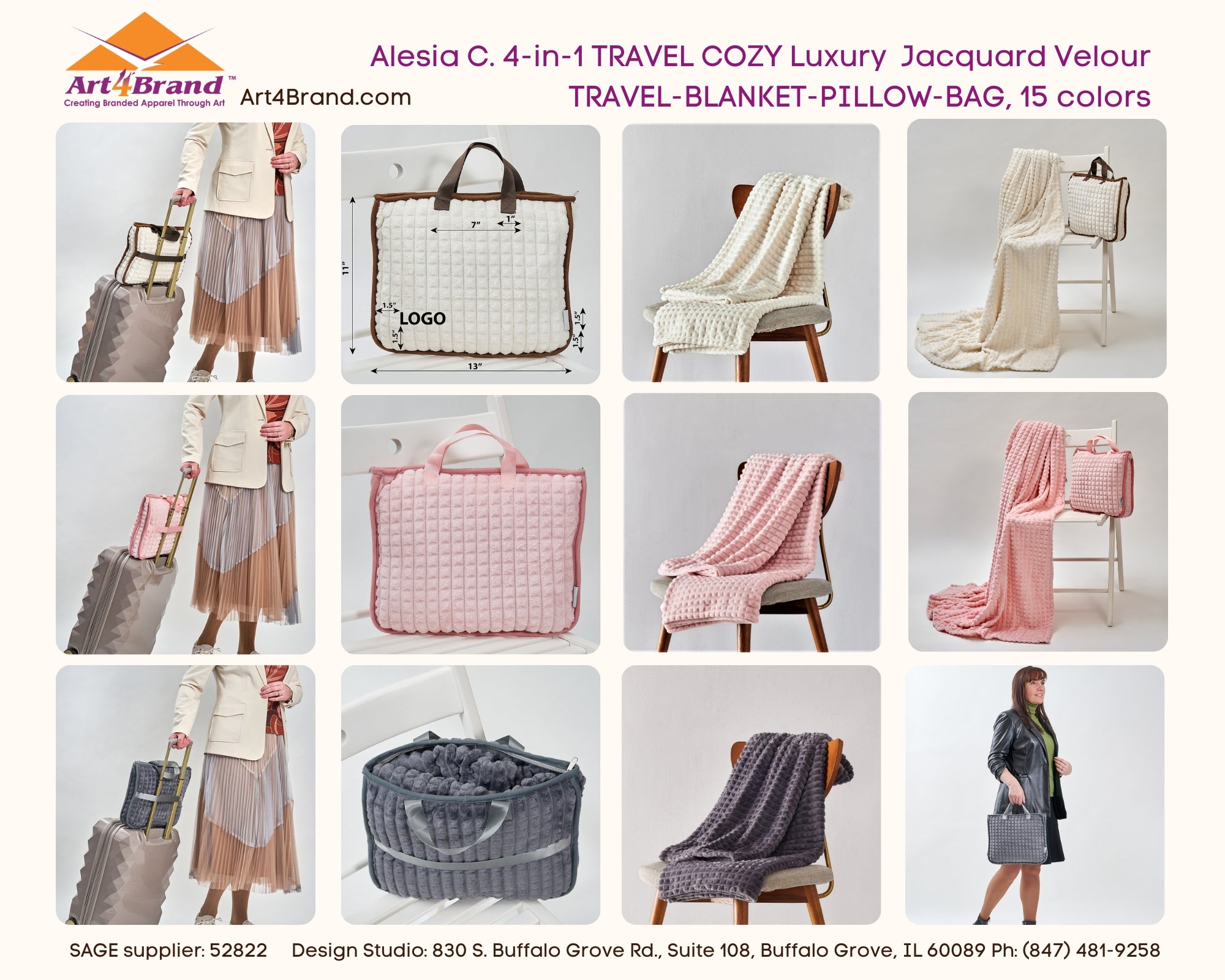 AB-10 Alesia C. TRAVEL COZY 4-in-1 Jacquard Velour Blanket-Pillow-Bag